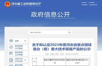 祝賀秦皇島鷹翔環(huán)??萍加邢薰井a(chǎn)品入選2023年度河北省重點領(lǐng)域首臺(套)重大技術(shù)裝備產(chǎn)品?